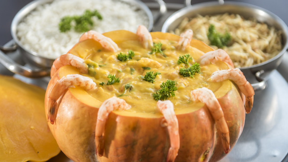 - Camarão na moranga: O camarão é cozido com requeijão dentro de uma moranga, formando um prato delicioso e muito saboroso.
