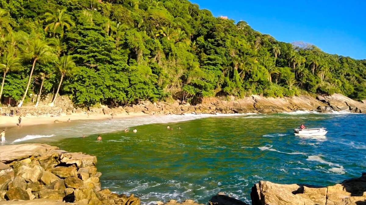Com um acesso difícil, realizado somente por meio de barco ou caiaque, é um paraíso escondido em Guarujá completamente vazia e isolada.